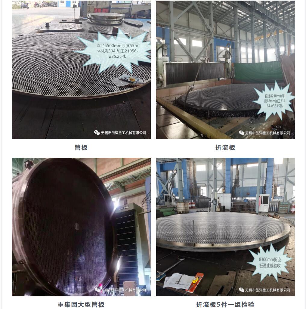 岱洋拥有众多管板加工方面的专业技术人员,通过一系列如带极堆焊、多块叠钻、叠镗、防震工装、倾斜角度钻孔等成熟的工艺组合,能提供除常见圆孔以外的宝石花孔、齿牙状孔、菱形孔及椭圆孔等不规则孔的技术支撑,可满足客户的多样化需求,实现为客户管板产品的量身定制服务。 换热器管板制造: 在”总有新高度”的指引下,克服困难,努力前行! 感谢尊敬业主的信任,感谢大家的支持!来之不易的喜悦感! 成品折流板 后续,岱洋重工精密制造分公司将继续严格把控进度与加工质量,不断积累管板制造配套的丰富的经验。进一步树立岱洋管板在压力容器、核电等行业的绝对加工优势。同时成立管板项目组,以贴近市场,快速反应,专业服务为宗旨,奋勇争先,努力奋进。 商务合作咨询:许良利 电话:18262541261 紧急联系人:崔大奇 电话:13301875123